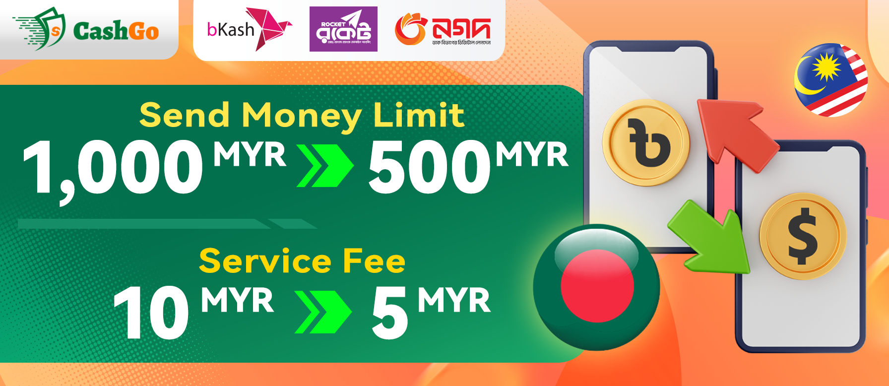 Starting from June 14, the maximum limit for a single remittance order will be reduced from 1,000.00 MYR to 500.00 MYR, and the service fee will be decreased from 10.00 MYR to 5.00 MYR.